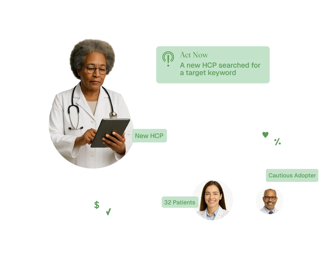 While most platforms update lists monthly or quarterly, PharmaForceIQ responds within hours. Our clients deploy content triggered by key real-world signals—like a relevant test result or HCP search keyword—before the window of influence closes. This level of responsiveness leads to better performance and cost savings.