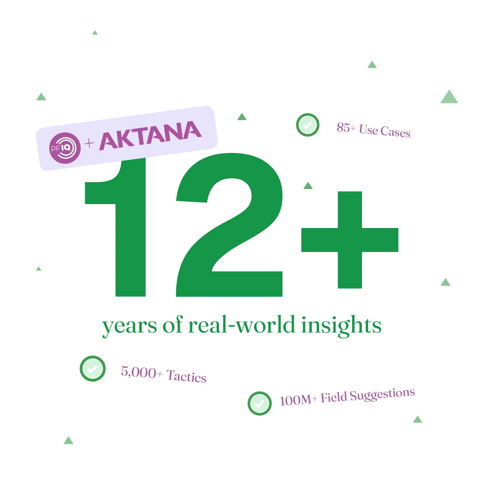 We offer a holistic solution to unify brand and field strategy, drive executional alignment, and measure impact fast. Our field next-best-action (NBA) platform is powered by Aktana’s proprietary dataset of real-world insights across 85+ validated use cases drawn from 100M+ field suggestions made and 5,000+ tactics executed over twelve years of orchestration and field execution expertise.